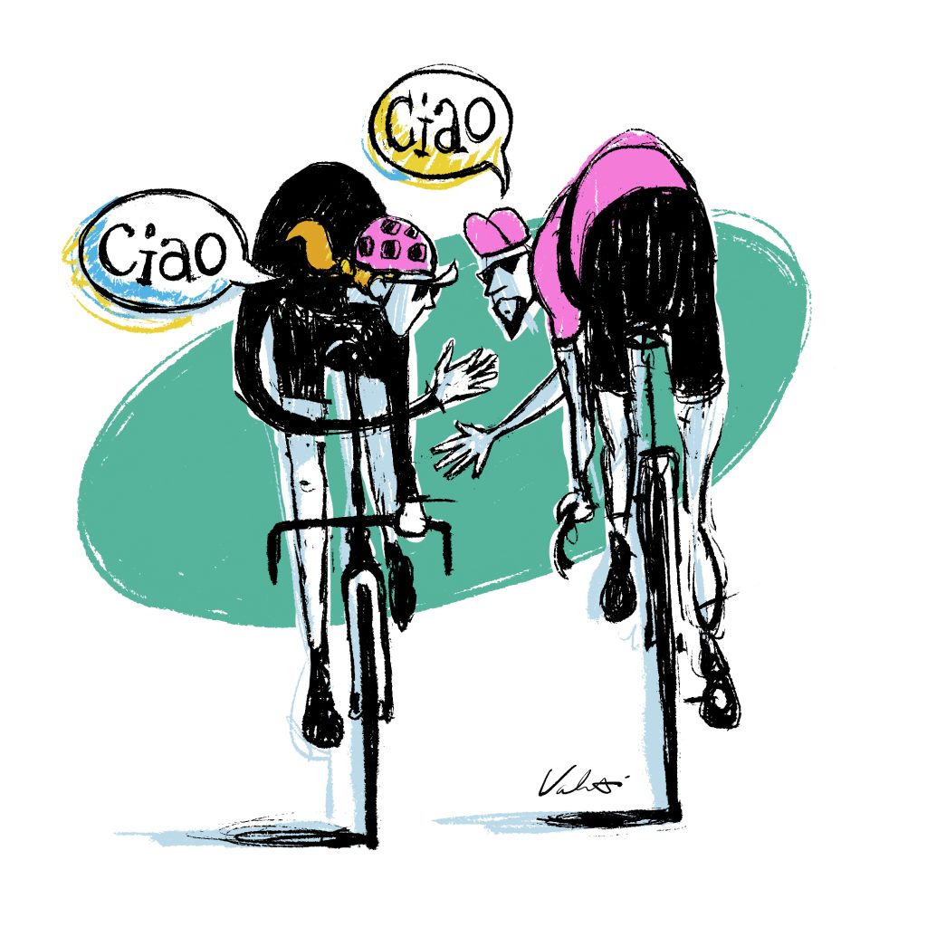 If countries had personality types, Italy would be off-the-charts extroverted. Italians are warm, curious, and always up for a chat—so, for the love of cycling, don’t be the grumpy non-waver. If the occasion calls for a greeting? Ciao is your casual “hey,” salve is a polite “hello,” and buongiorno is a cheerful “good morning.”