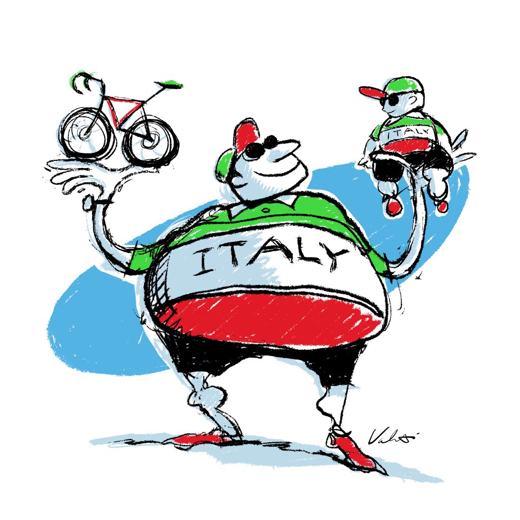 I moved to Italy in 2012 and have been on a bike ever since teaching my younger sister how to ride. Here are a few things I’ve learned along the way (with the help of Michael Valenti’s artwork). Some eccentric. Others research-backed facts.